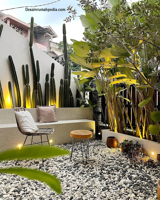 Inspirasi pertama kami hadirkan taman mungil ala instagramble yang bisa dengan mudah untuk anda tiru di rumah. Desain taman ini memberikan suasana rumah anda seperti di sebuah cafe, sehingga weekend anda tak perlu lagi keluar rumah. Anda bisa menghadirkan kursi aestetik dengan lampu-lampu yang menambah taman anda semakin nyaman dan tentunya semakin indah ketika malam hari.